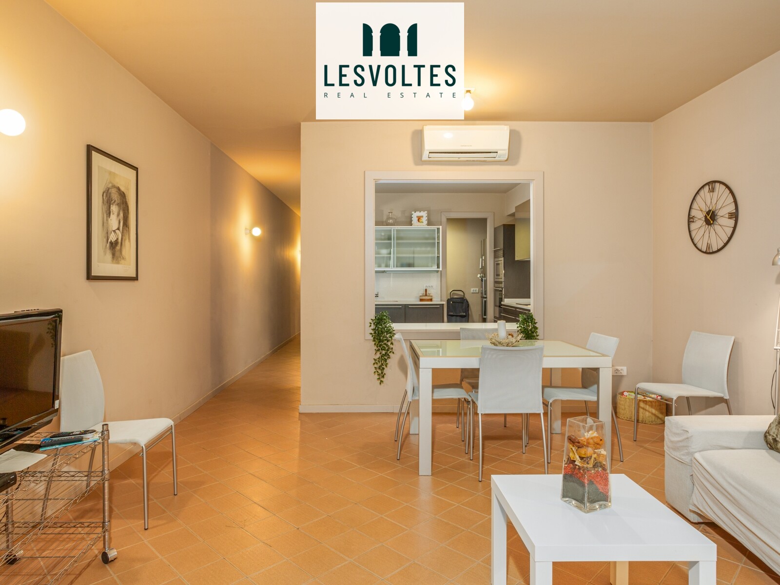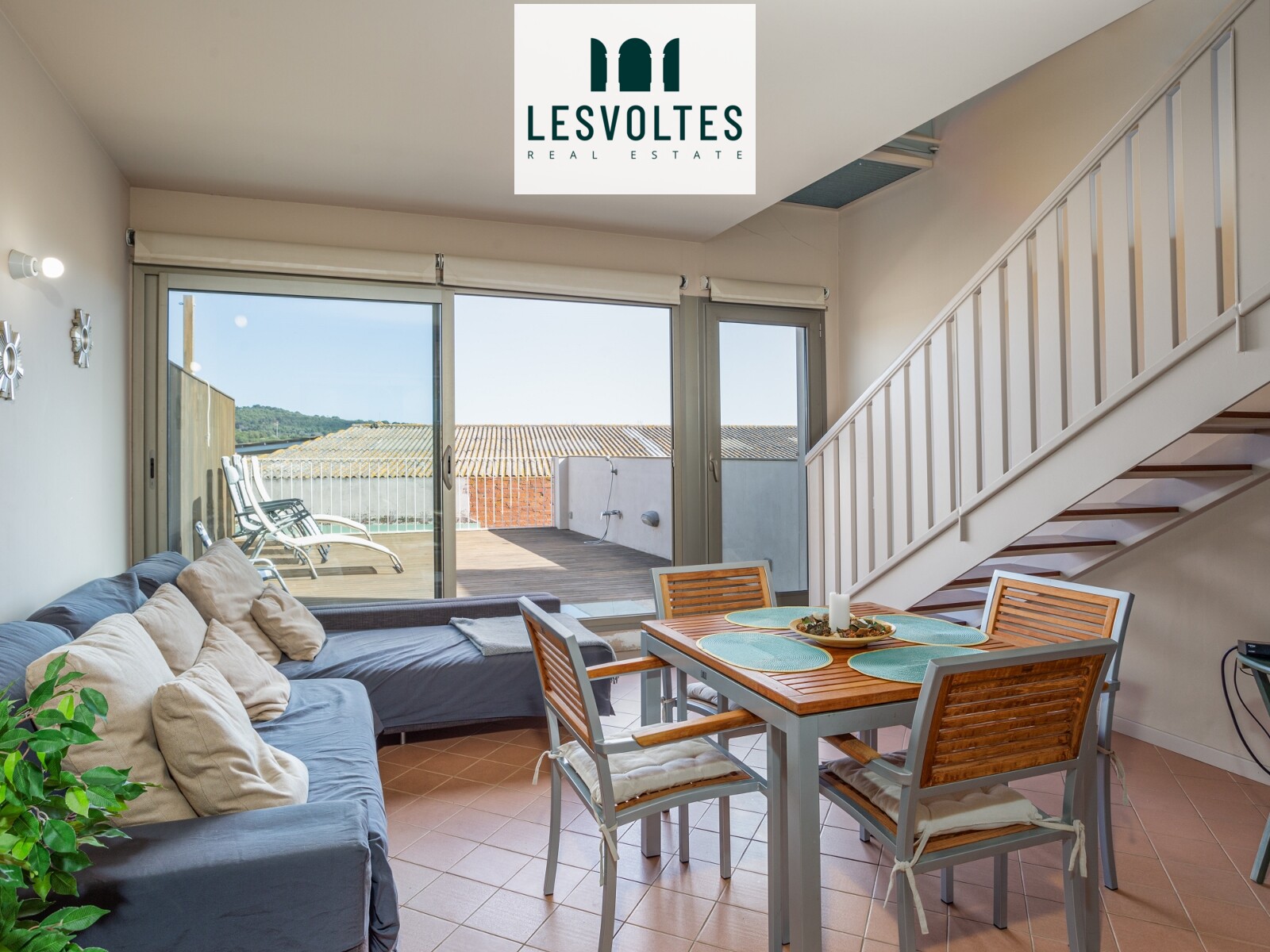 PLANTA PRIMERA: Habitatge de 129 m2, amb saló menjador amb accés a terrassa de 25m2, cuina semioberta, 2 dormitoris dobles amb armaris, 1 bany complet i 1 lavabo, i tercera habitació habilitada com a despatx.