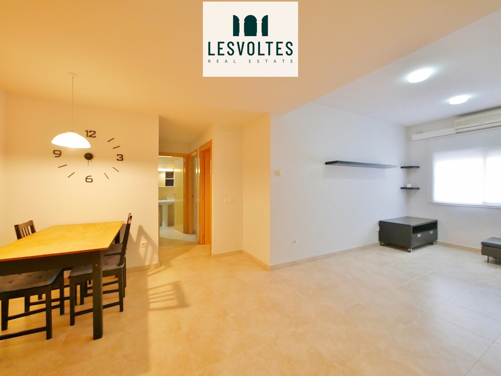 Planta baixa de 66 m2, distribuït en espaiós saló-menjador amb cuina oberta i totalment equipada, dos dormitoris dobles i un bany complet amb dutxa. Es lloga semimoblat i equipat.