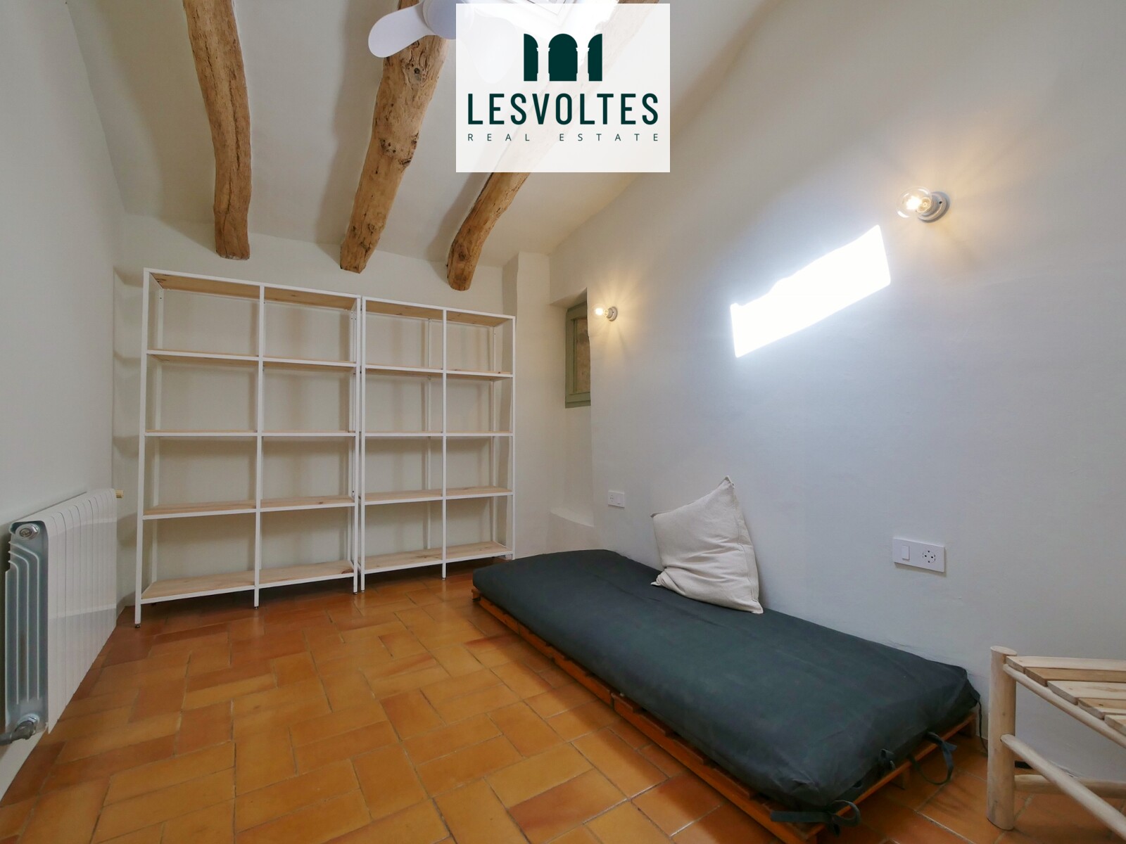 L’apartament, annex de la masia principal on es troba ubicat, manté el caràcter i els aspectes característics de les masies, com les parets de pedra, les bigues de fusta i els terres de tova, combinats amb el confort de les finestres Velux, que aporten una excel·lent entrada de llum natural, i els ventiladors de sostre.