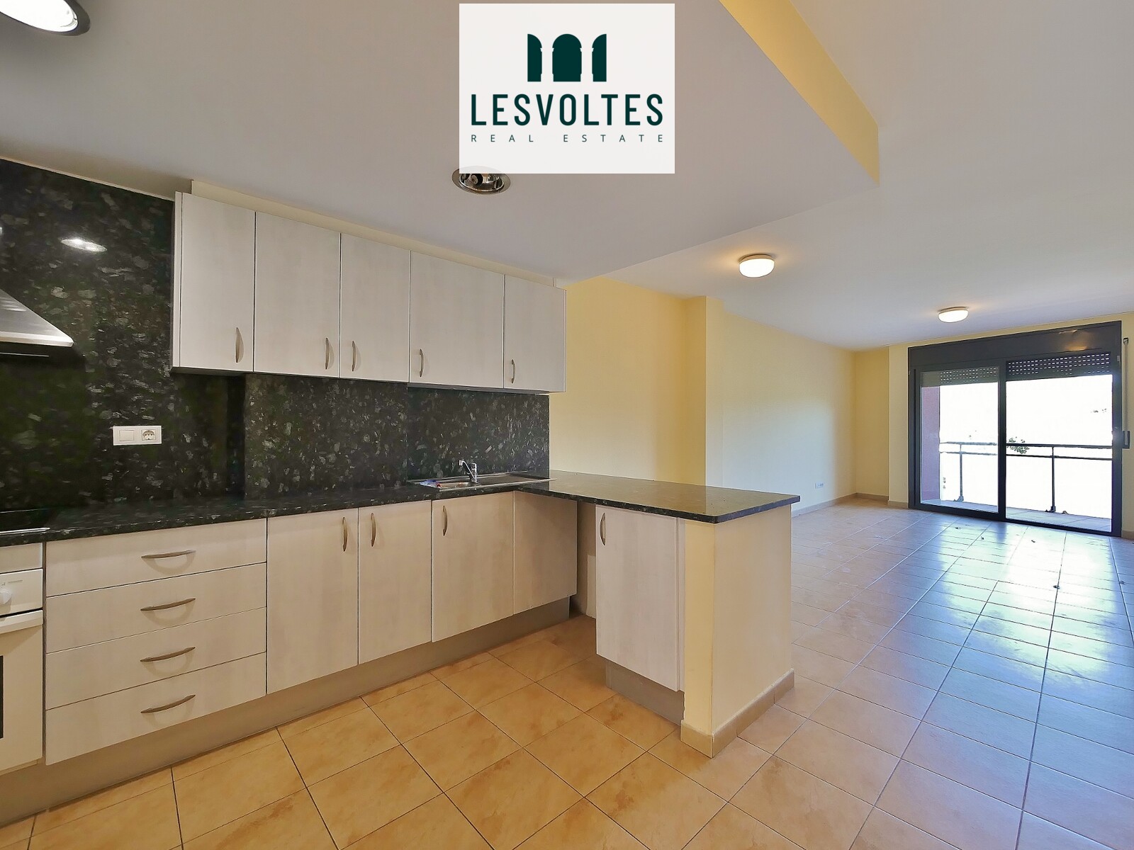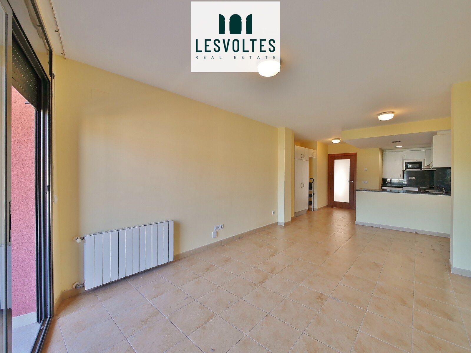 El piso se distribuye en cocina abierta a gran sala de estar - comedor con acceso a balcón, y zona de noche con 2 habitaciones, 1 doble con armarios y 1 individual, y 1 baño completo.